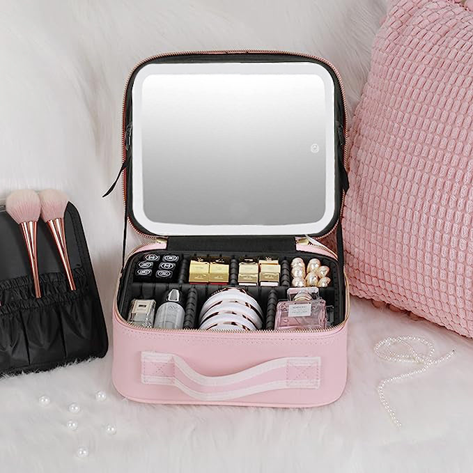⭐⭐⭐⭐⭐ "I absolutely love this makeup case! The interchangeable cubbies make it so easy to organize all of my products, and the LED mirror is a game changer. I can finally do my makeup anywhere and anytime—it’s a true lifesaver! The quality of the case is fantastic; it’s durable and stylish. I highly recommend this product to anyone in need of a convenient and stylish makeup solution!"